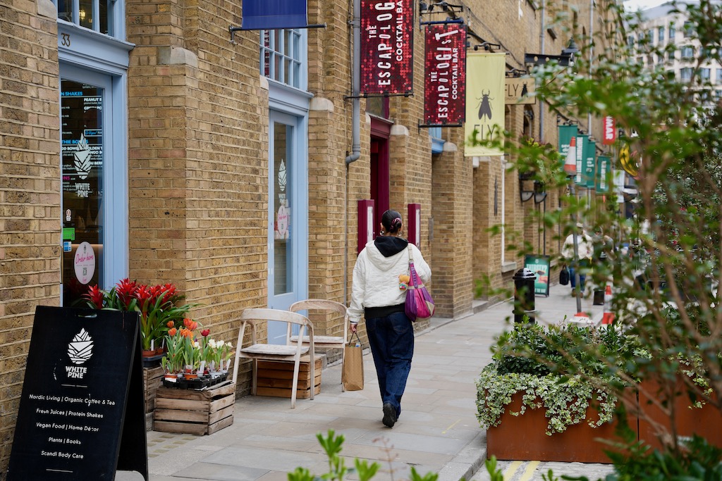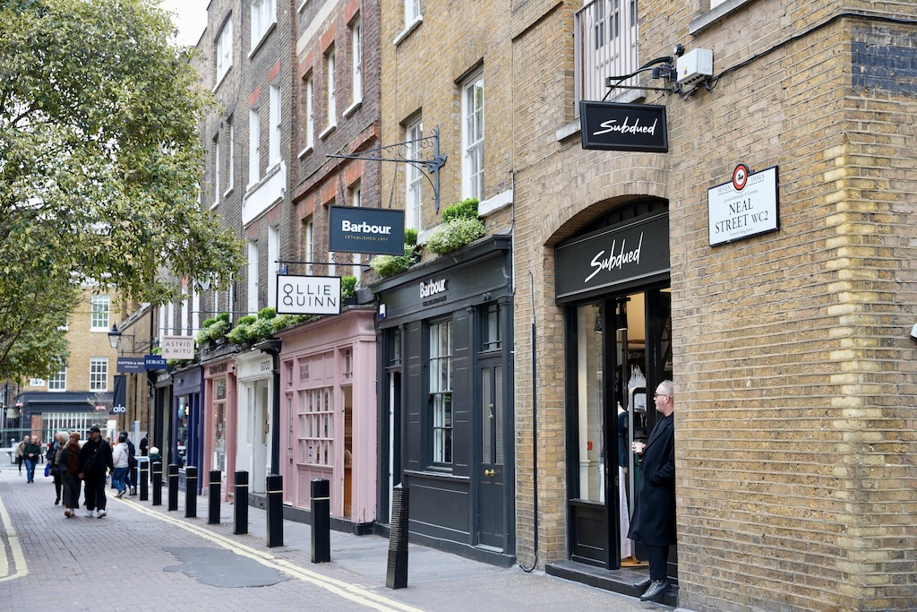 Wenn du dich vom Covent Garden Piazza bei deinem Spaziergang immer in Richtung Nordwesten hältst, kommst du in Richtung Seven Dials an zahlreichen hübschen Gassen mit bekannten Boutiquen und auch kleineren unabhängigen Marken vorbei.