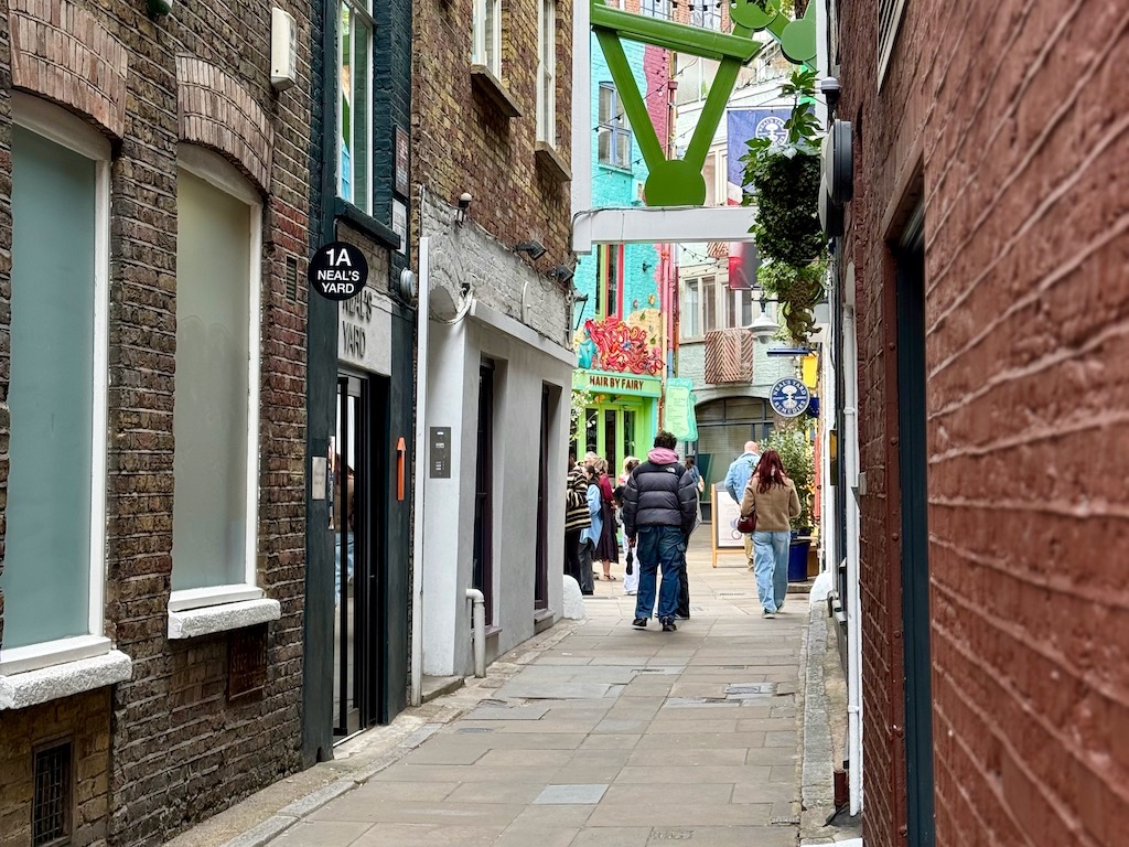 Heute gibt es hier besonders viele nachhaltige Geschäfte und mit seinem speziellem Hippie Flair und gemütliche kleine Cafés und bunten Häusern ist Neal’s Yard ein echter Geheimtipp in London!
