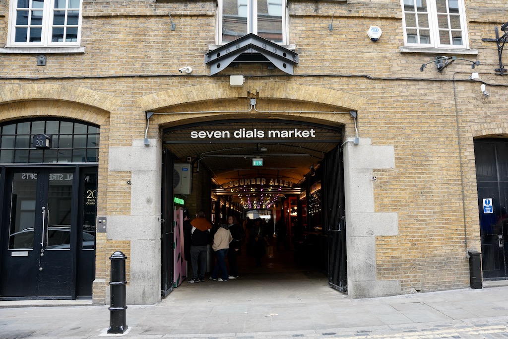 Den perfekten Abschluss für deinen Spaziergang durch Covent Garden & Seven Dials findest du im Seven Dials Market. Hier kann man sich für jeden Geschmack etwas aus den zahlreichen Ständen aussuchen und gemeinsam in der Mitte der Halle Essen (und sogar von hier aus Getränke ordern).